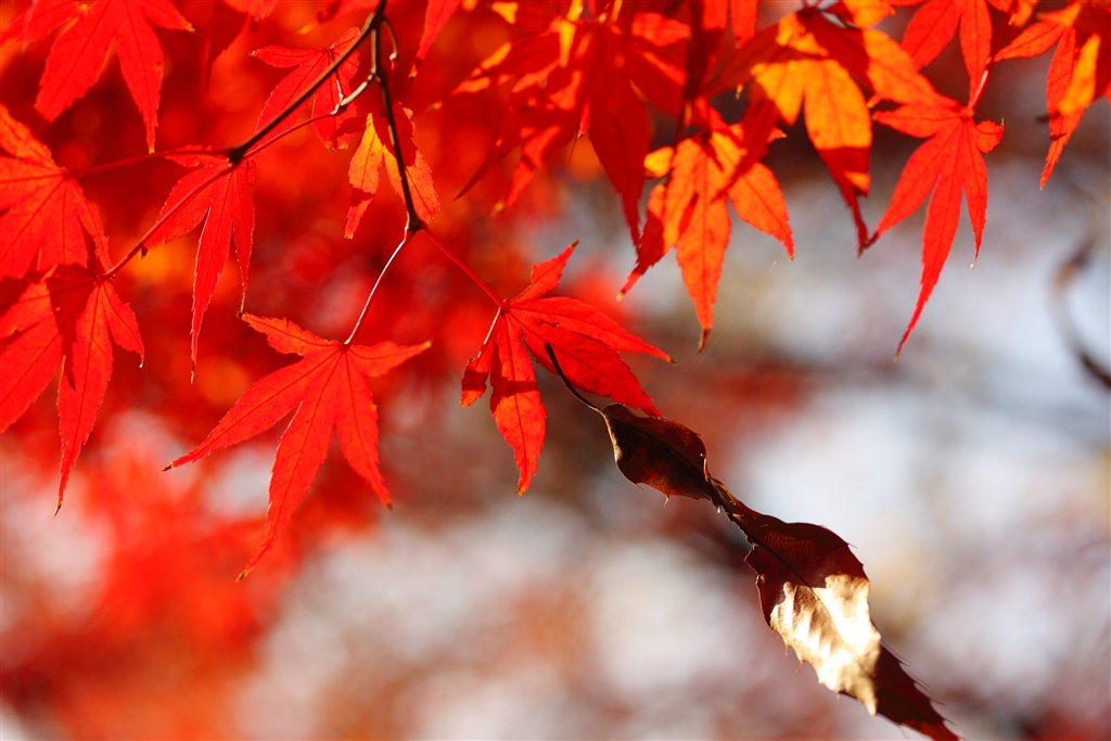 近所のもみじと枯葉