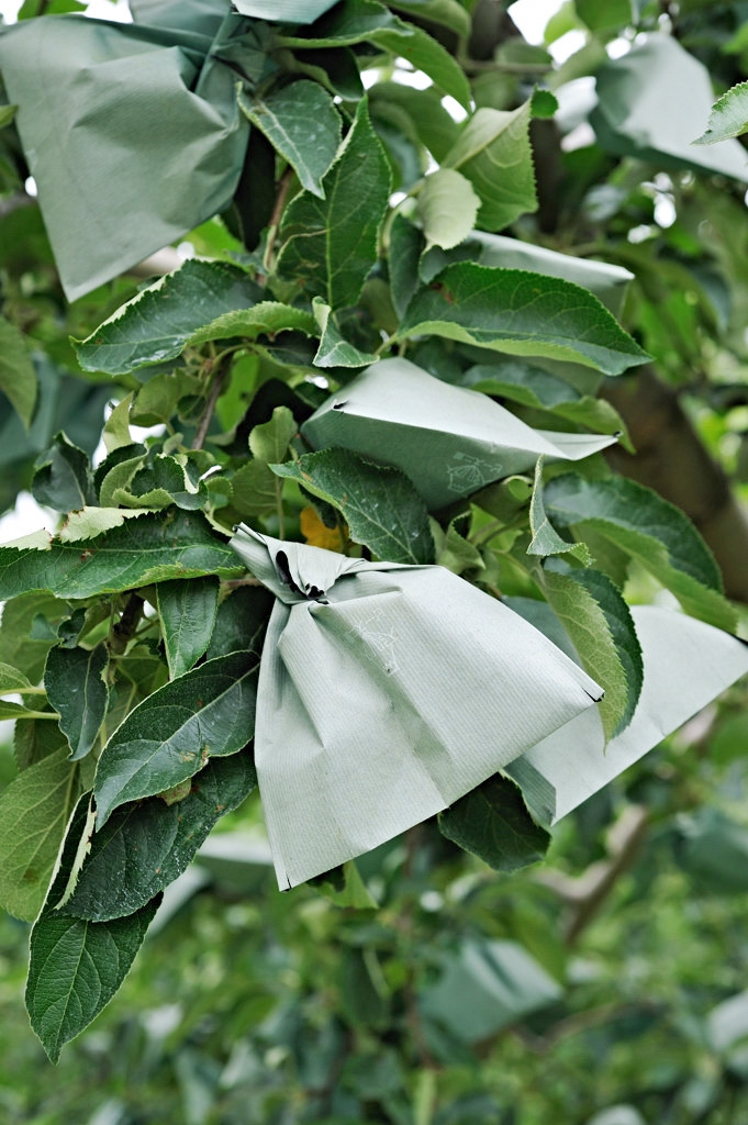 一つ一つ袋かけしたリンゴ