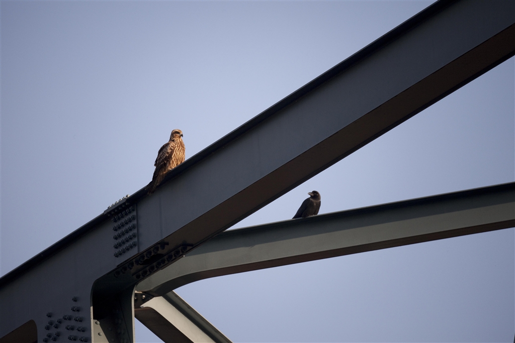 カラスにちょっかいされてたトンビの子ども