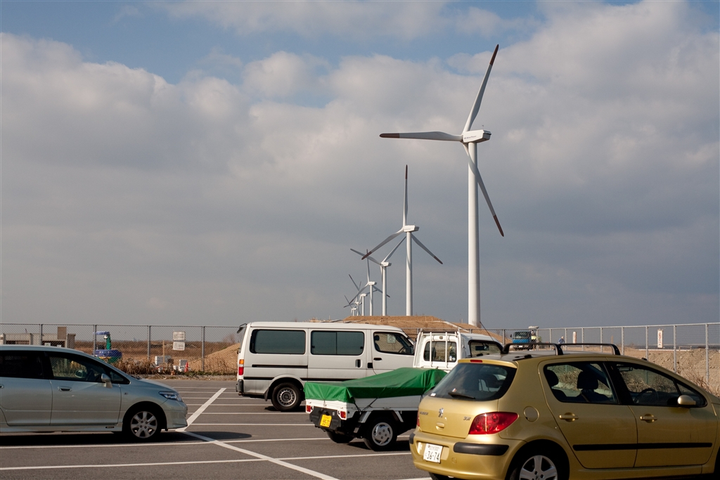 風車を撮りたかったのに、工事中で近づけない(涙)。