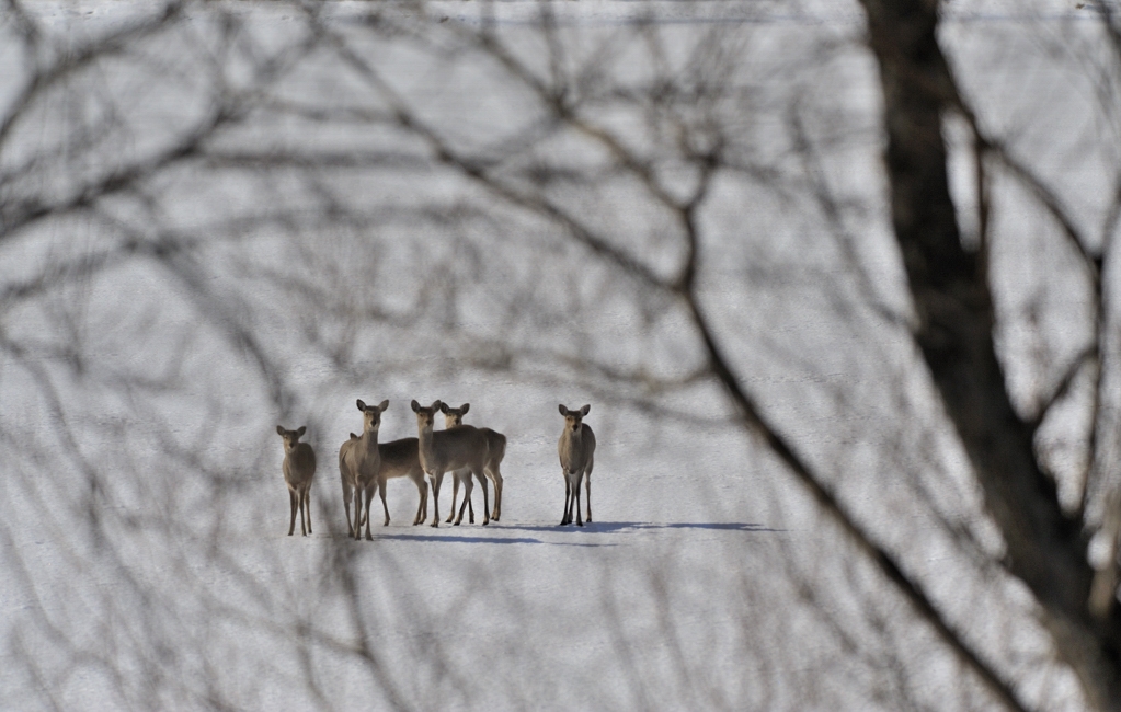 偶然エゾシカの群れに会いました。前ボケが汚かった、涙
