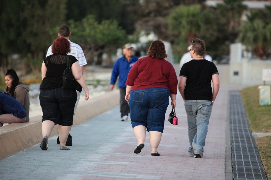 夕暮れを散歩するヘビーな家族