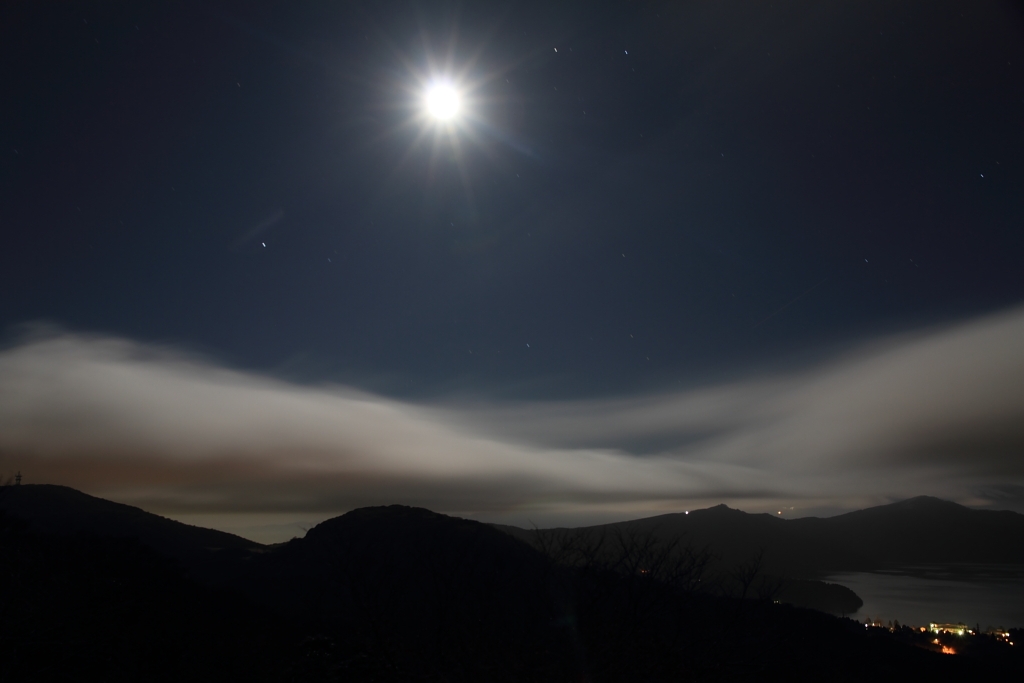 流れゆく雲と満月