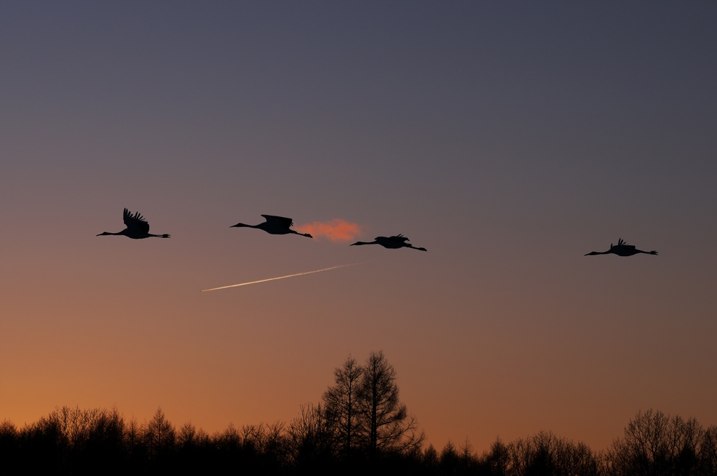 寝床へ帰るタンチョウ