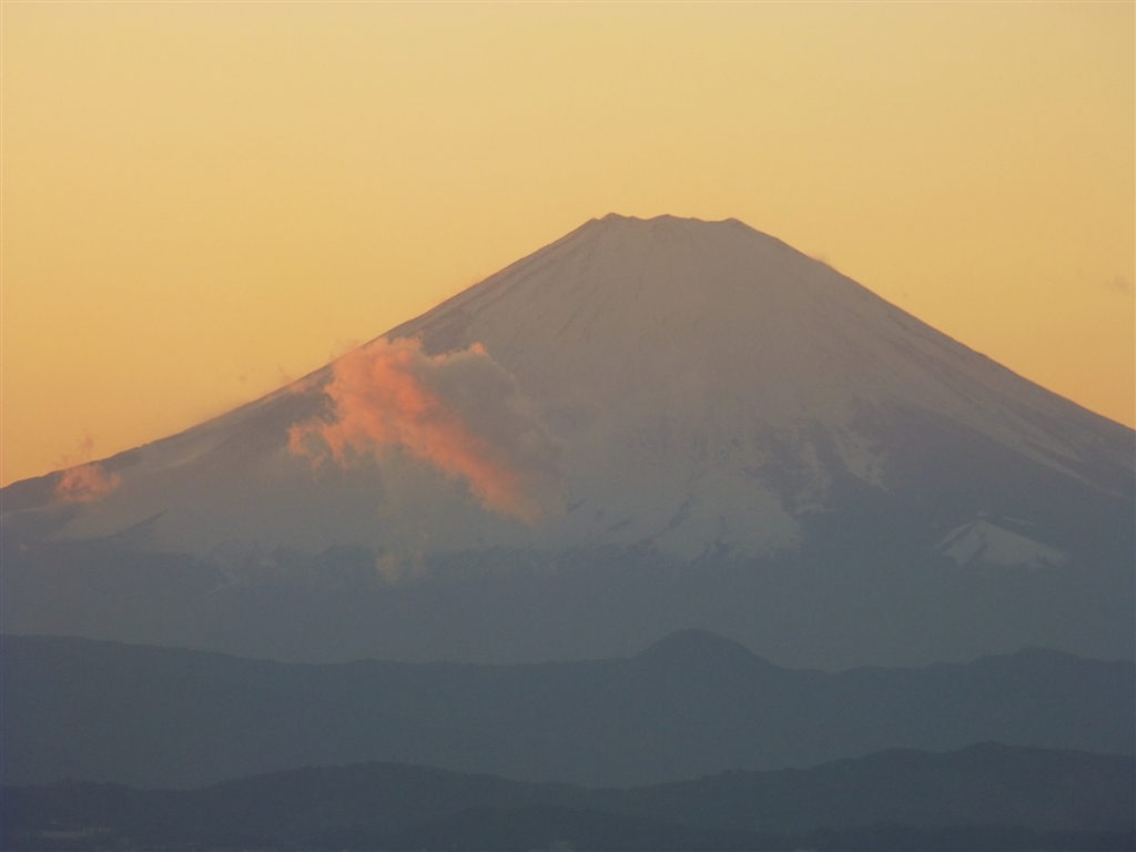 夕日です 朝は寒さに負けました
