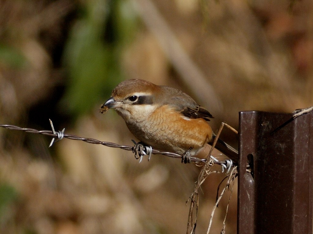 目ざとく餌を見つけるモズなど