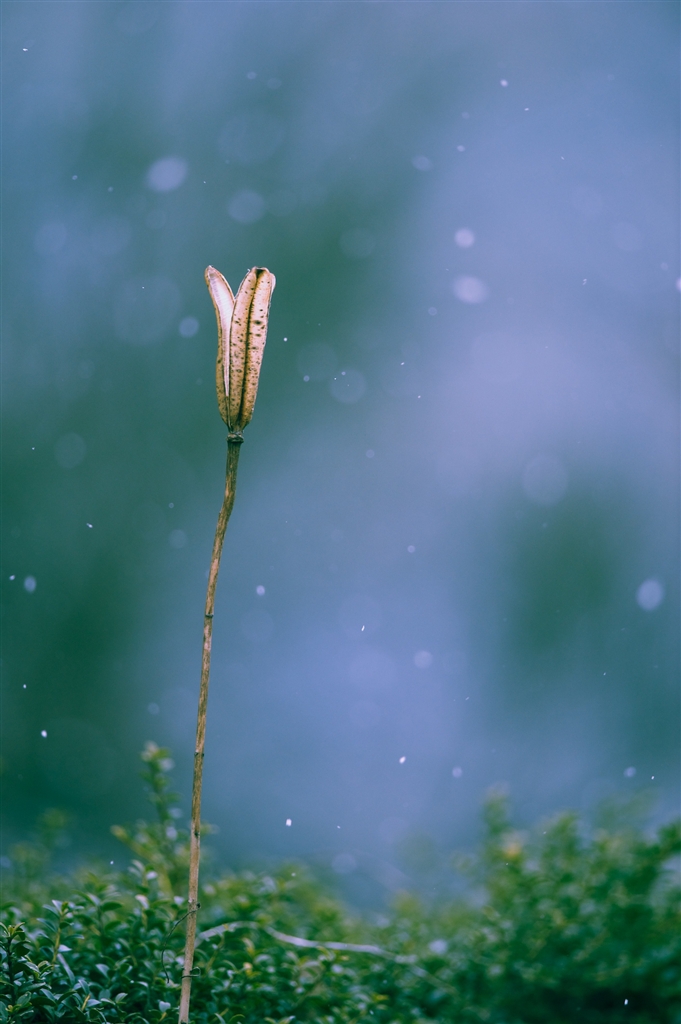 雪舞う中に佇立す