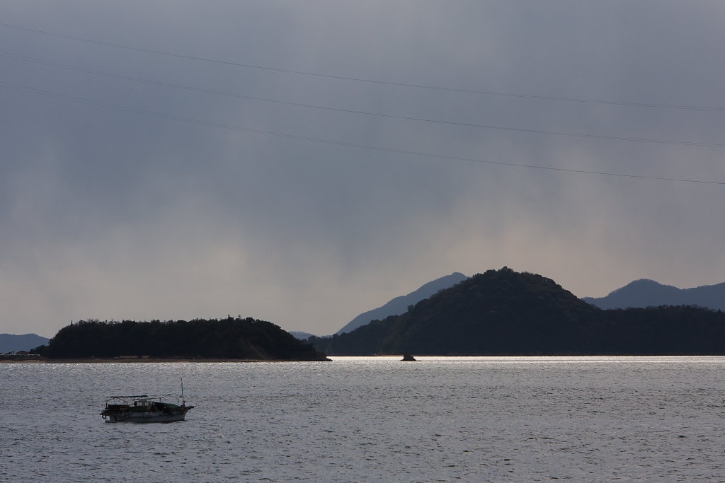 遠くの陽を浴びて光る海