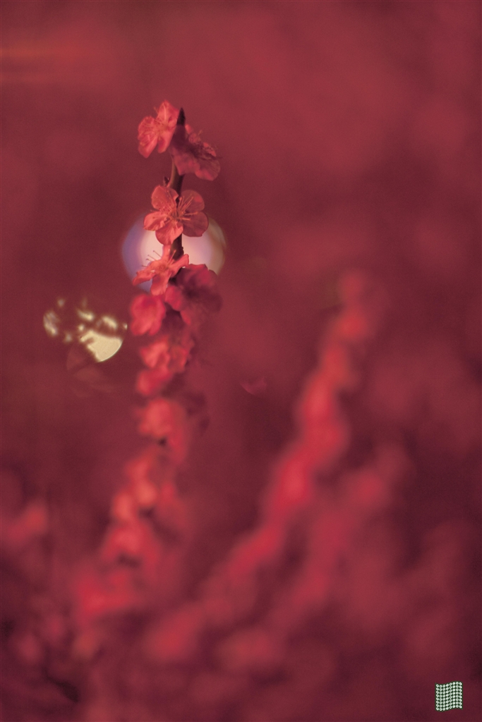 ネオンで照らされている梅の花が満開になりました。