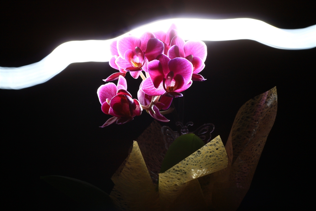 胡蝶蘭(後ろの幅の白い線は手で動かした光源)