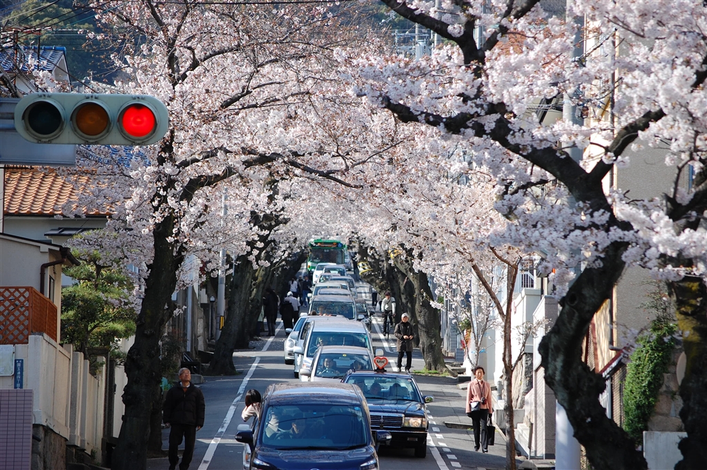 桜のトンネル(車がいっぱい)