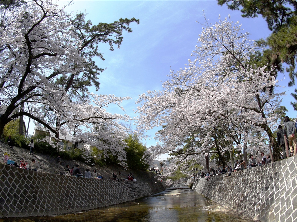 夙川の桜を見上げる