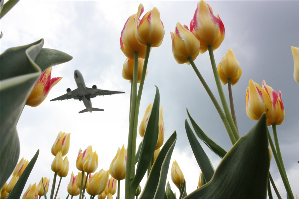 チューリップ畑で見上げてごらん…