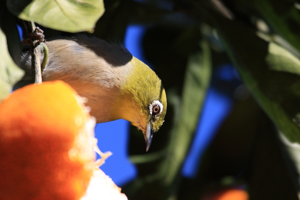 みかんを食べるめじろ