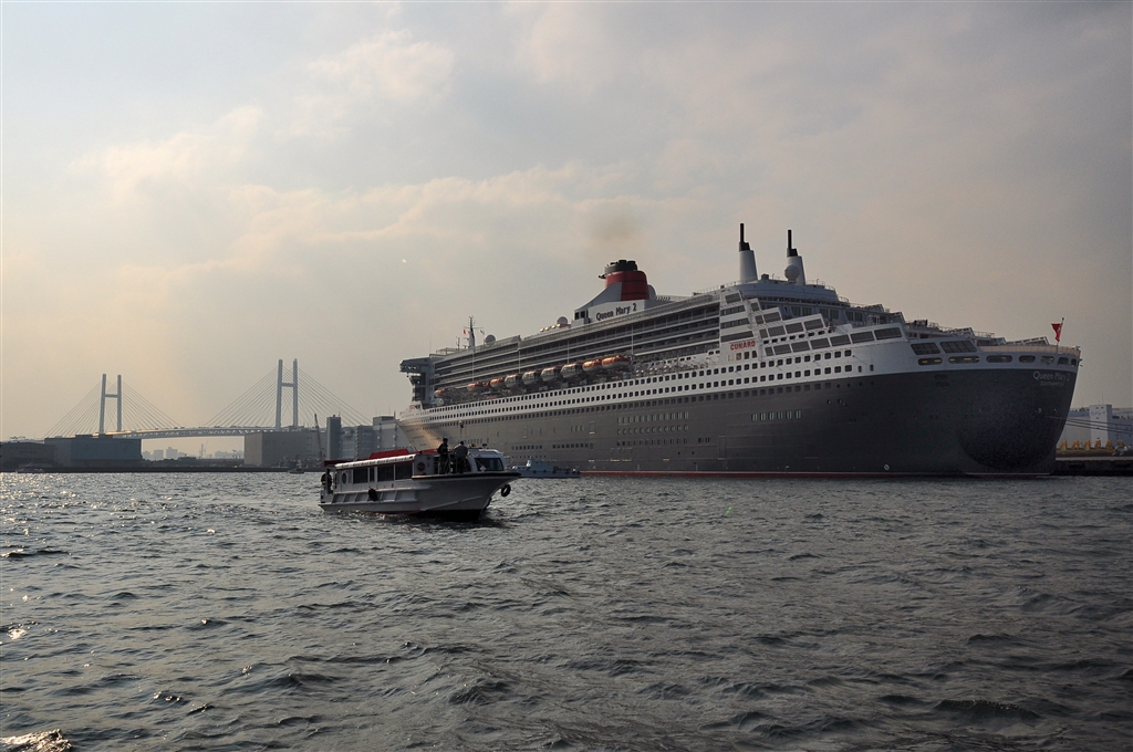 ベイブリッジとQM2 (手前は赤い靴号です)