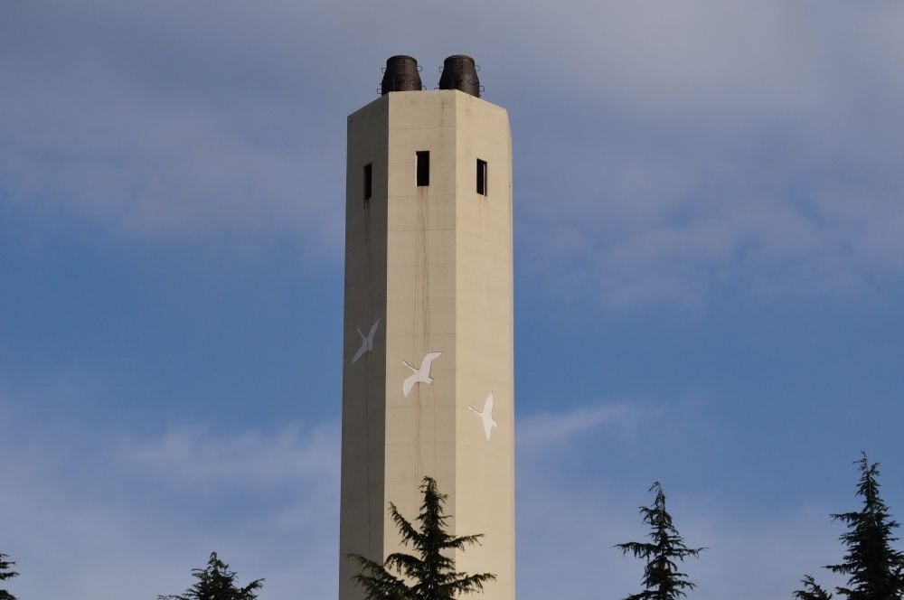 煙突の壁面にも