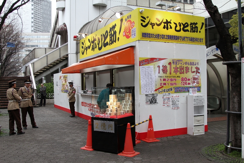 歩道のど真ん中にある宝くじ売り場に