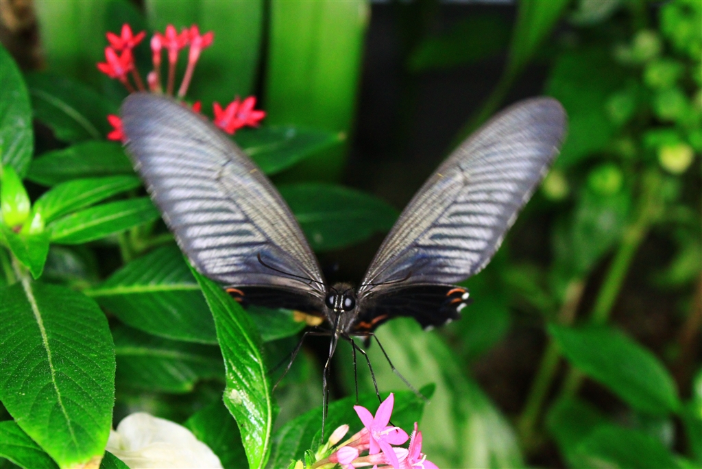飛翔するクロアゲハ(シャッターを切った瞬間だけ60WのLEDで照明しています)