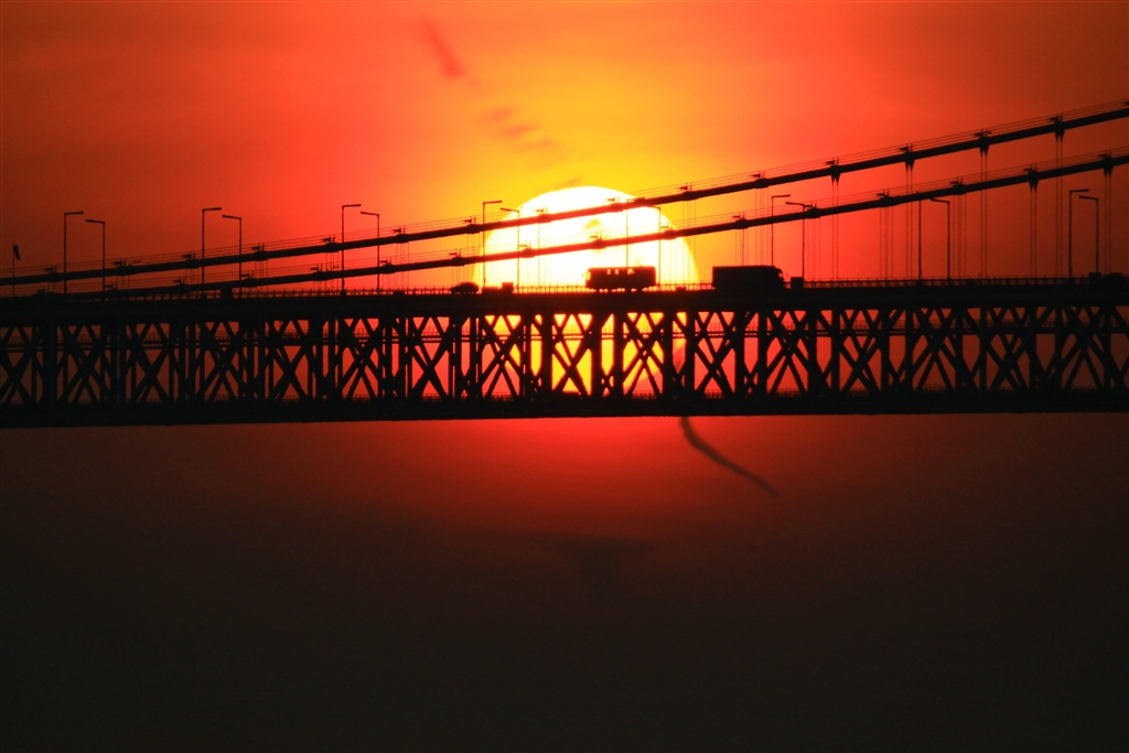 垂水港からの眺め(明石海峡大橋まで2.5kmでレンズを通して車がよく見える)