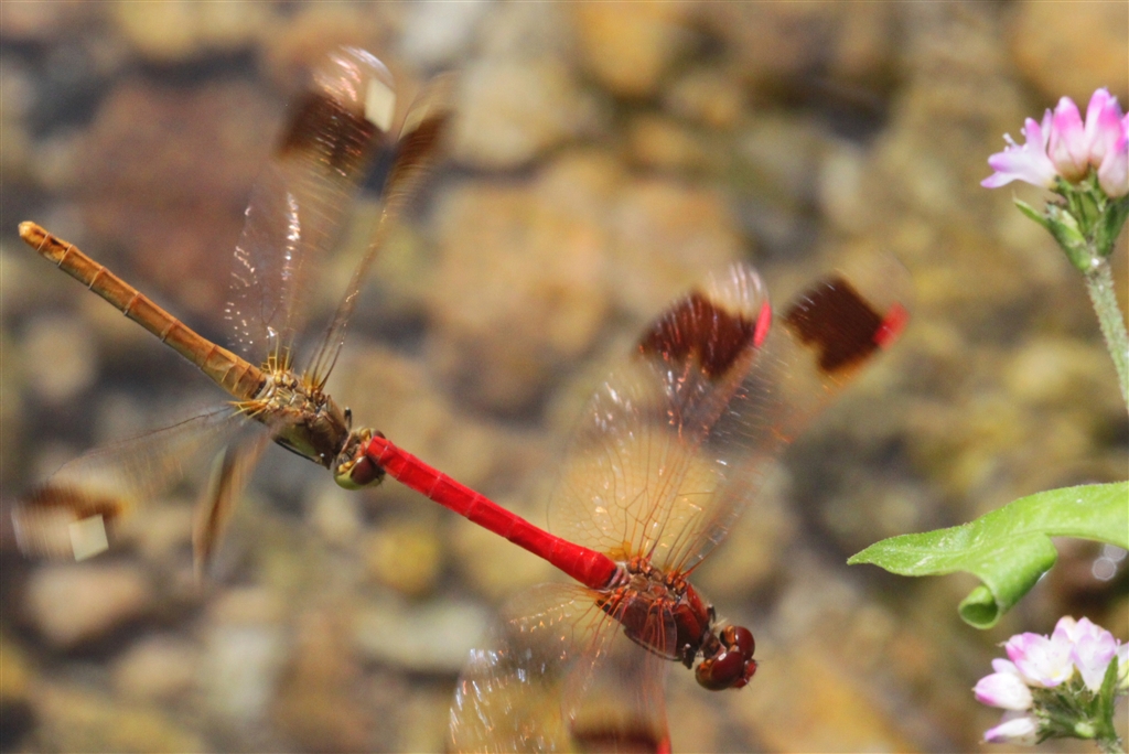 成熟したオス(赤くなる)はシッポの先でメスの頭を引っ掛ける