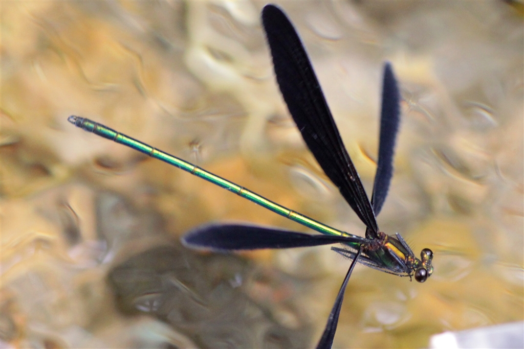 たいてい水の上を飛ぶ(巡航中のトンボはどれも肢を畳み込む)