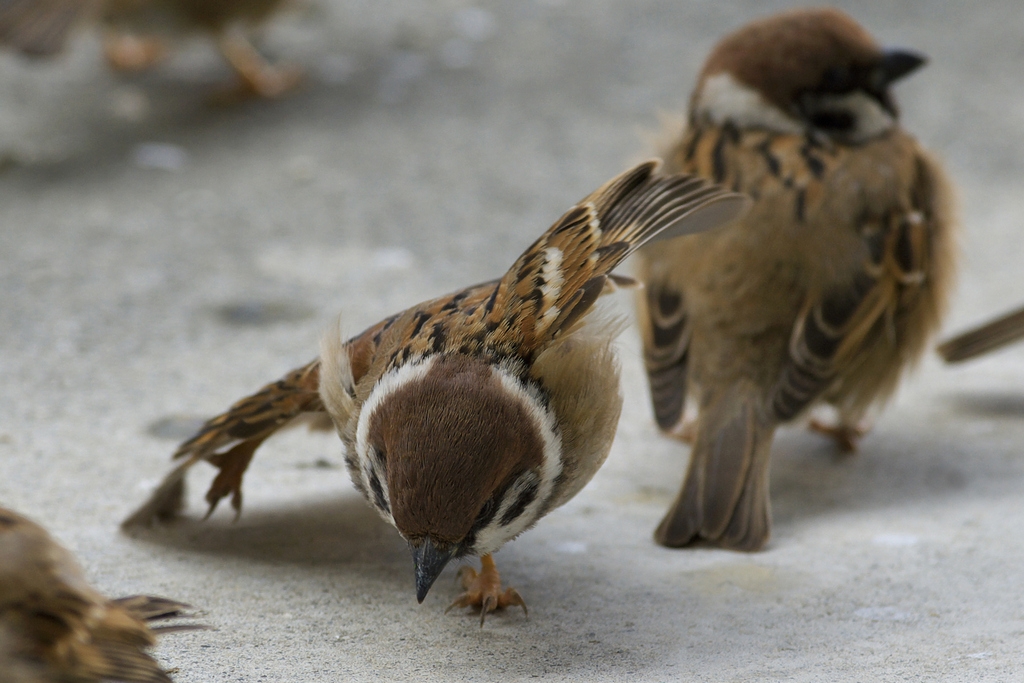 右羽と右足を伸ばしてストレッチ♪