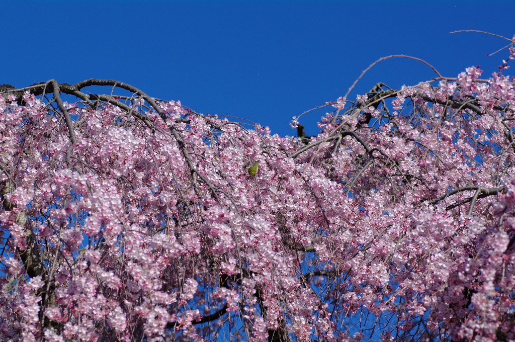 メジロも枝垂れる