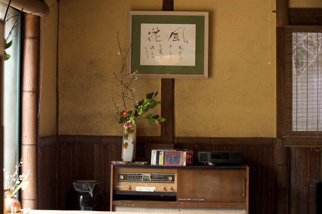 古い音響装置のある蕎麦屋