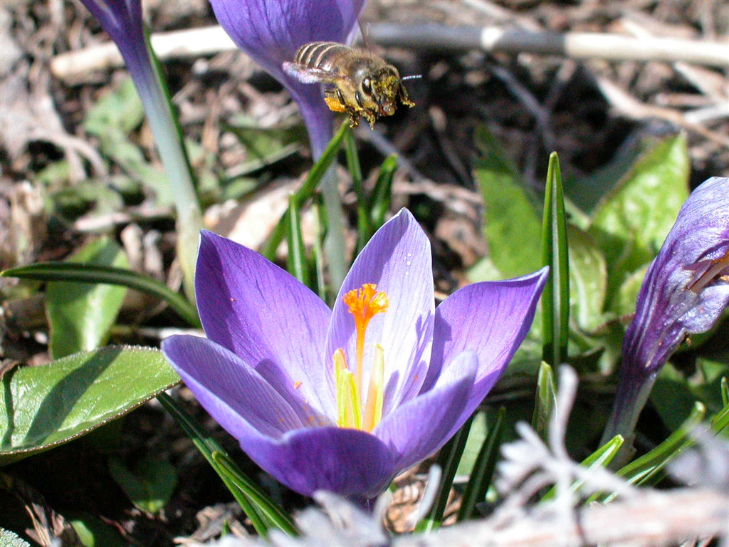 クロッカスにきた日本ミツバチ