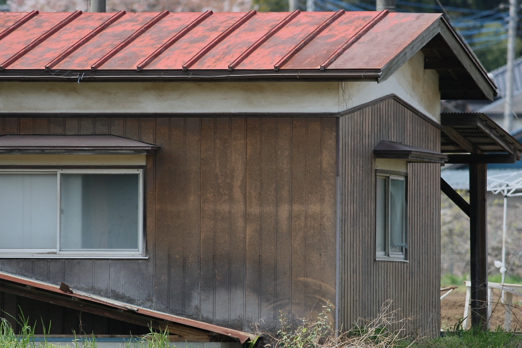 レンガ色の屋根の寂れた家