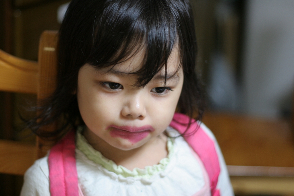 『ちび怪獣「娘」口紅でいたずら塗りまくる』