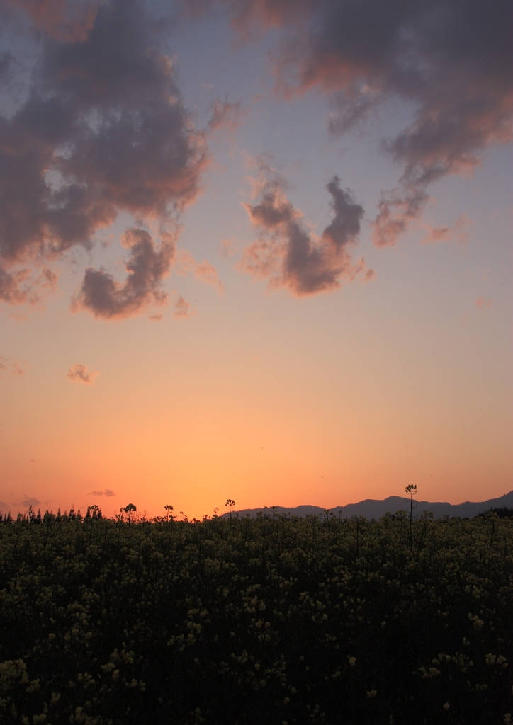 落日の菜の花畑