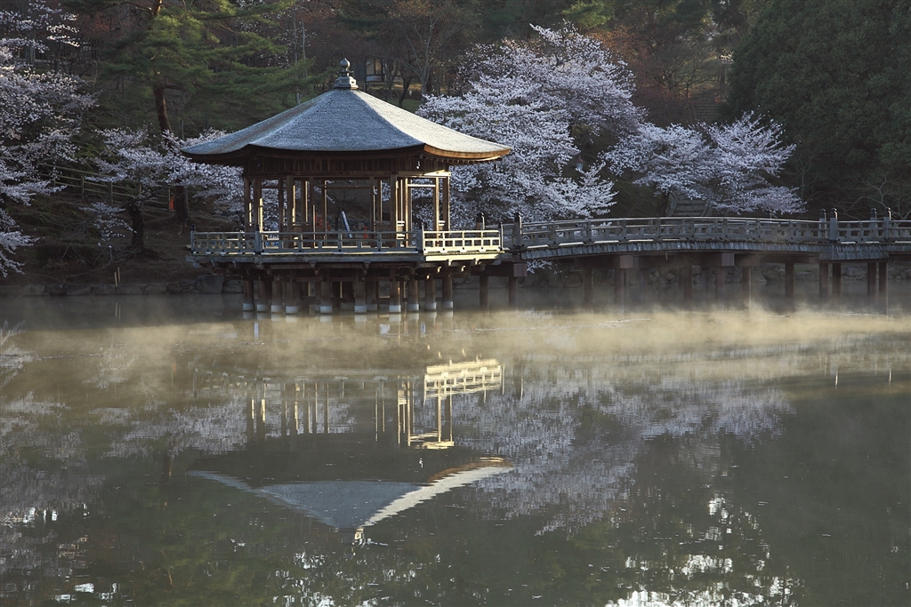 朝冷え浮見堂