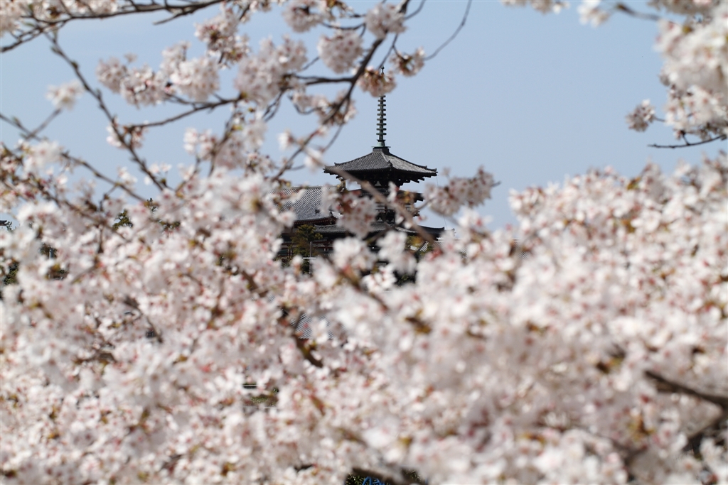 秋篠川より薬師寺東塔を望む