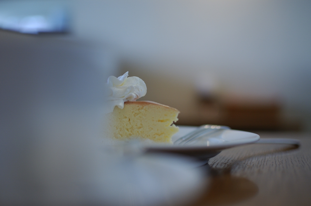 暗くてカップ越しのチーズケーキが美味しく見えません、泣