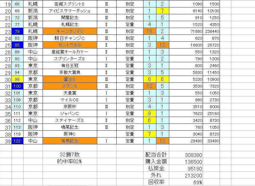 宝塚記念までで1枚にしました。