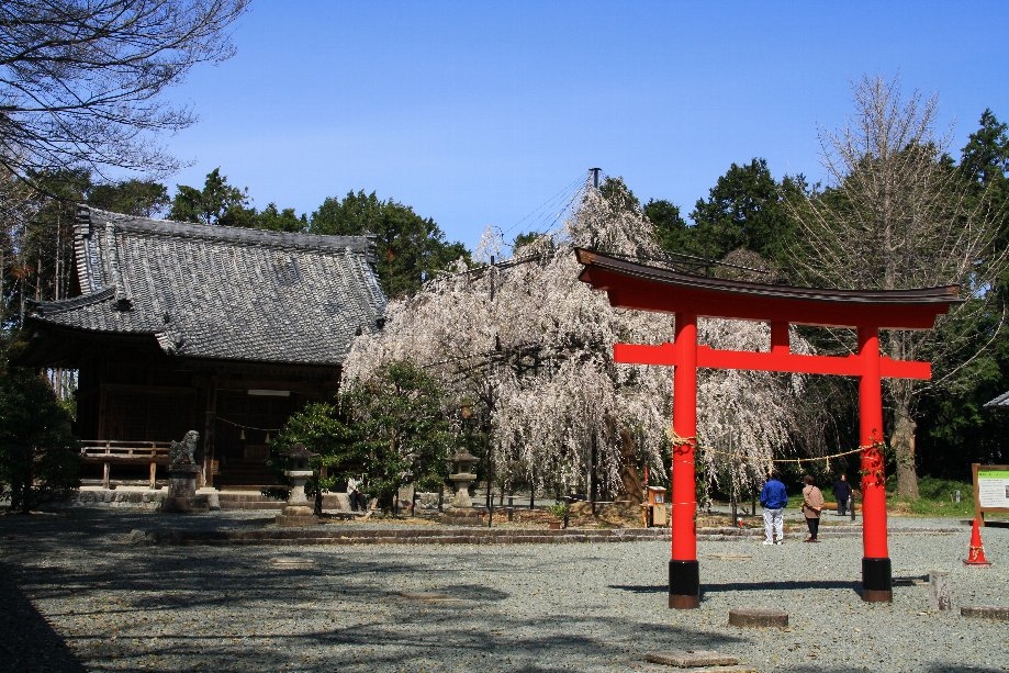 近くの神社の枝垂れ桜