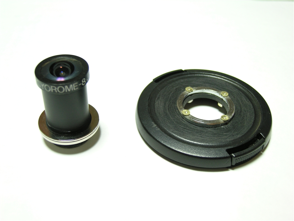 gyoromeと取り付けアダプター(レンズキャップを加工)