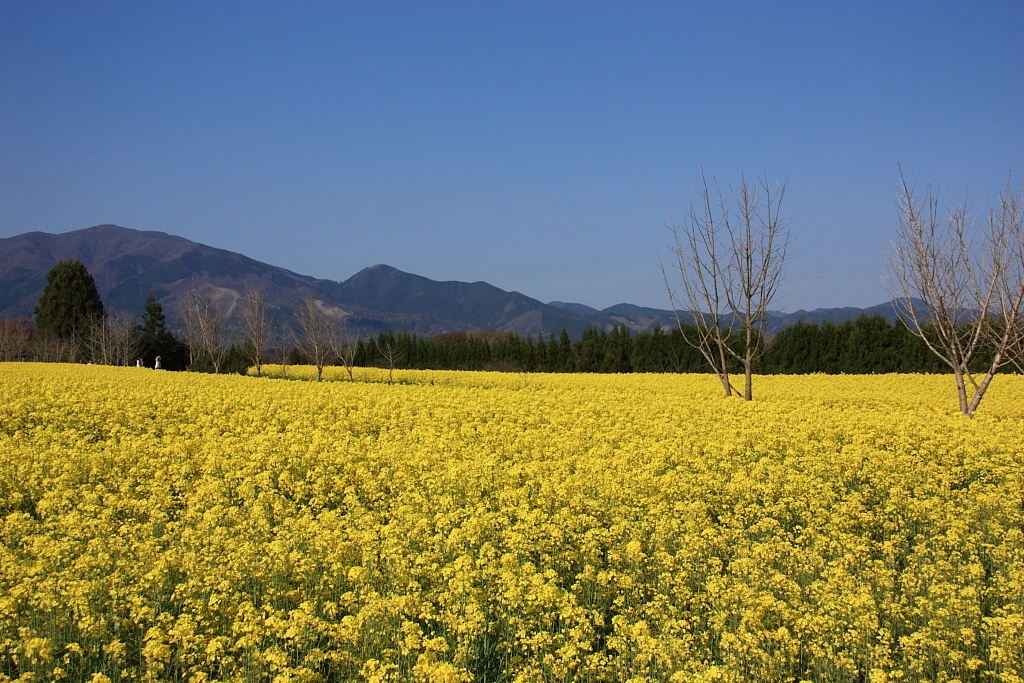 中国山地と菜の花畑