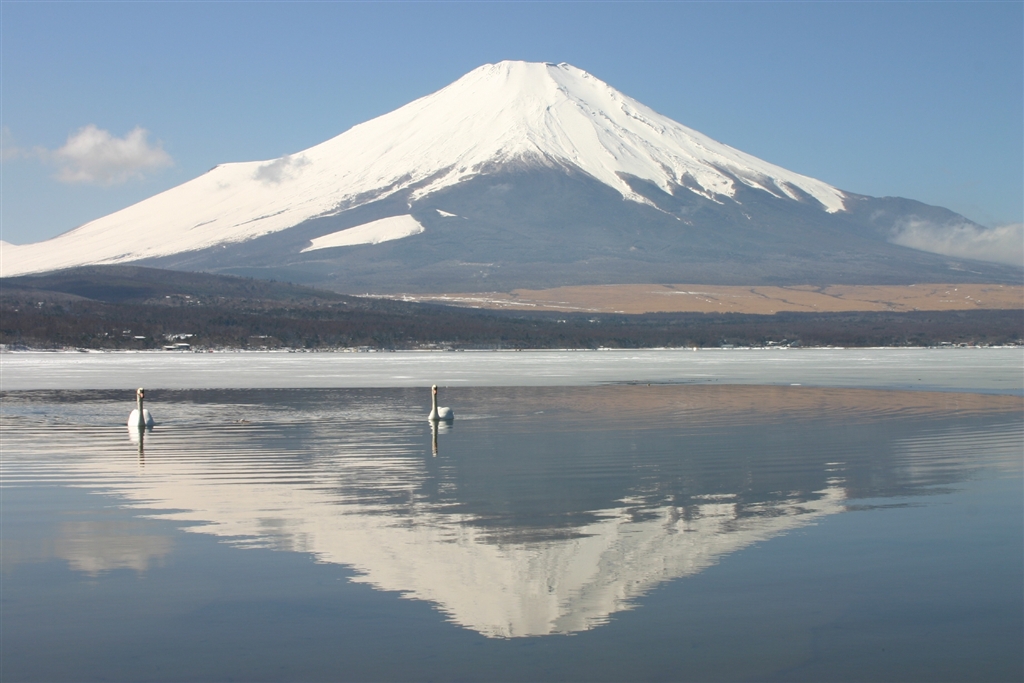 逆さ富士と白鳥