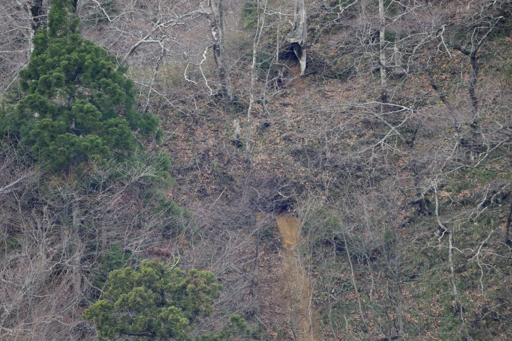 奥山の急斜面の土穴、上下2カ所