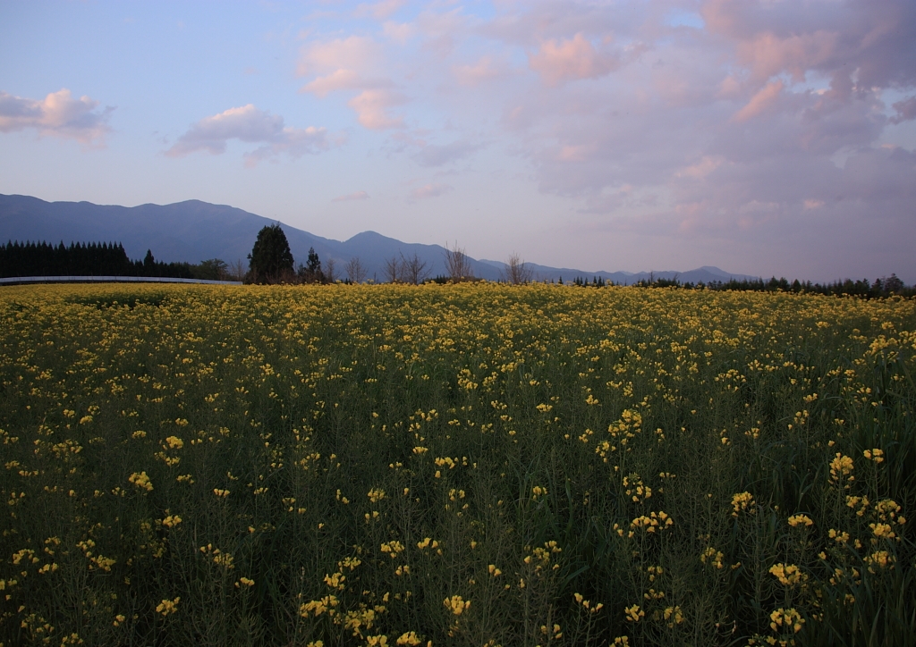 夕方の菜の花畑