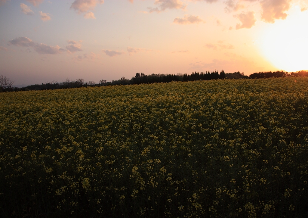 夕方の菜の花畑