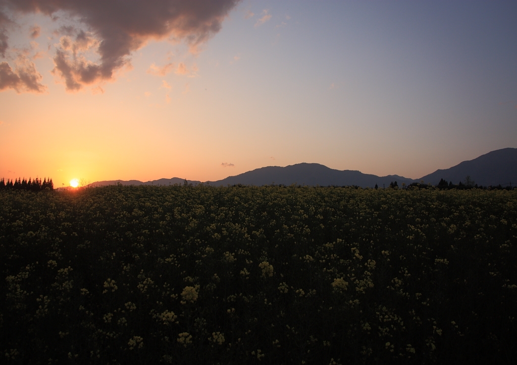 菜の花畑に沈む夕日