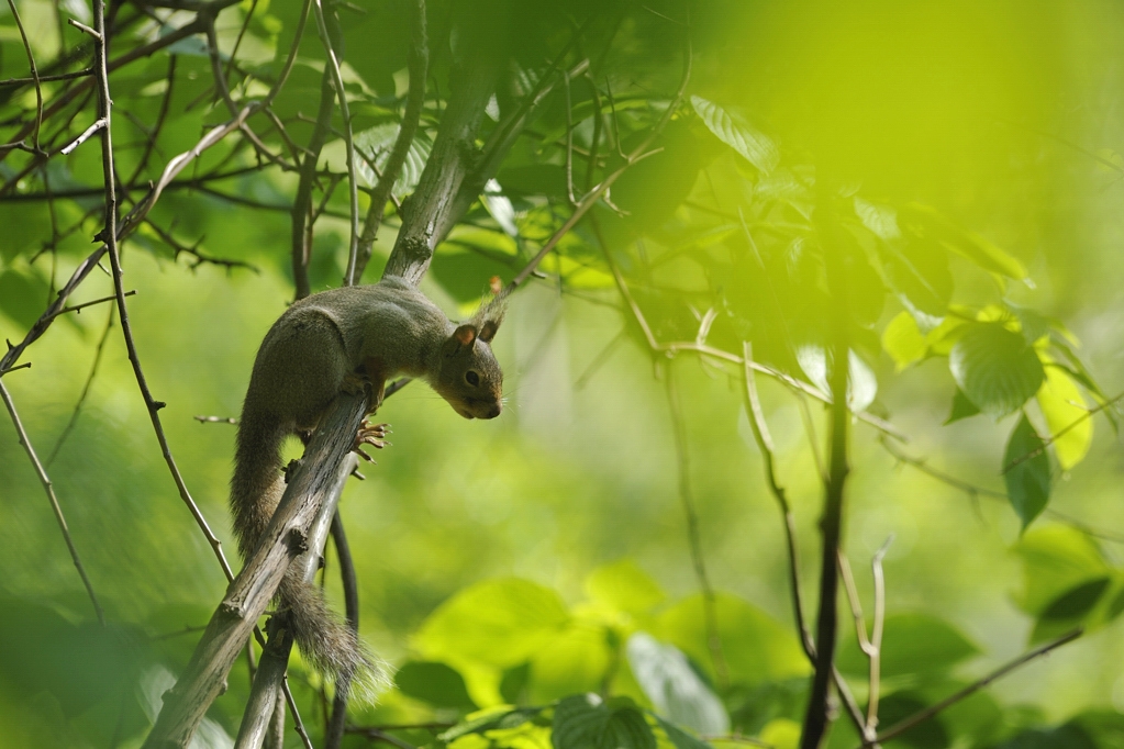 リンゴ園に接していた林にリスが