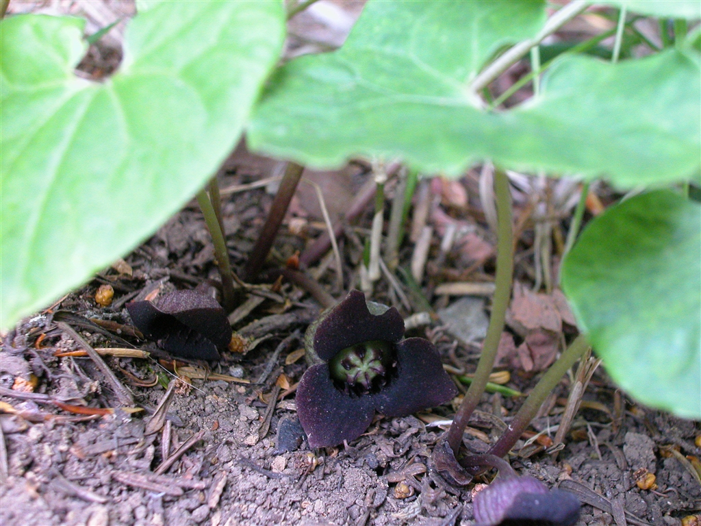 ウスバサイシン 土に埋もたような花も