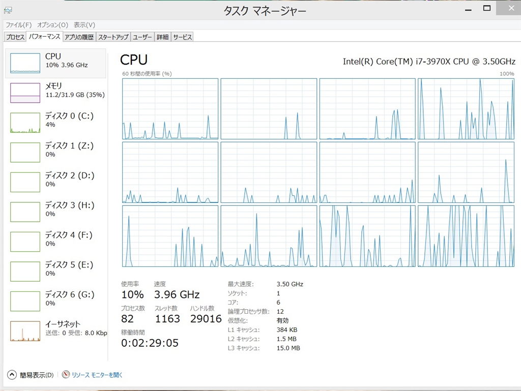 『3355万桁実行中(約5分経過したころ)』 CPUすべて ピンクモンキーさんのクチコミ掲示板画像2/2