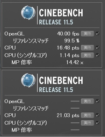 『Cinebench R11.5 上段:定格 , 下段:4.2Ghz』 PC何でも掲示板 ura03さんのクチコミ掲示板画像2/2