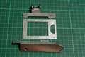 切り離す場所は、NEXのストロボ取り付け孔のカバーがちょうど引っかからないぐらいにするのがよいでしょう。そうすると、あっちこっちの出っ張りが、カメラに少しあたるので、これをうまく削って、前後の支えになるようにします。孔は、下側から、桁のど真ん中を貫通させます。2.5mmの孔だと皮一枚残す状態になるはずです。もちろん、1回で開けるのではなく、もっと細いドリルで、誘導孔を開けて、それを広げるようにします。