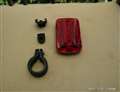 自転車ライト兼用のLEDクリップライトを自転車に取り付ける部品のクリップをはさむ部分を使います。写真のように切り離して、真ん中に貫通穴をつくり、M2.6のビスで止めるだけです。